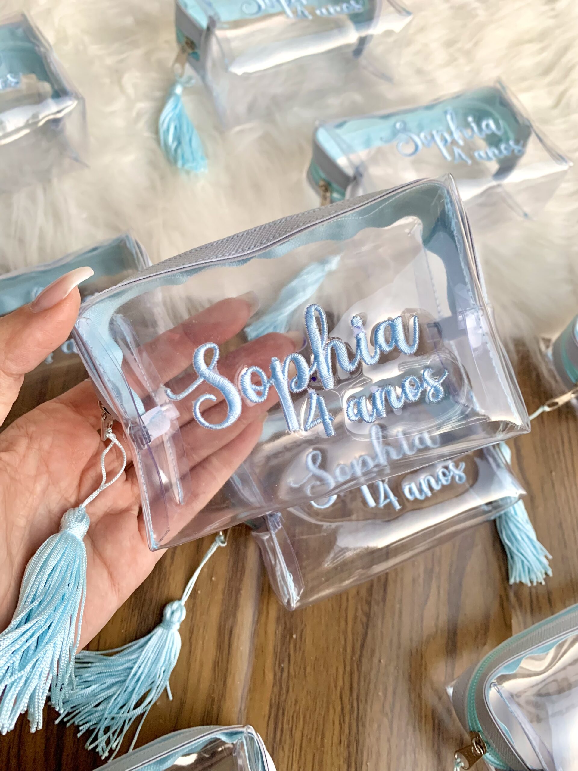 Personalização: Bordado direto na peça. Pingente de Tassel incluso.