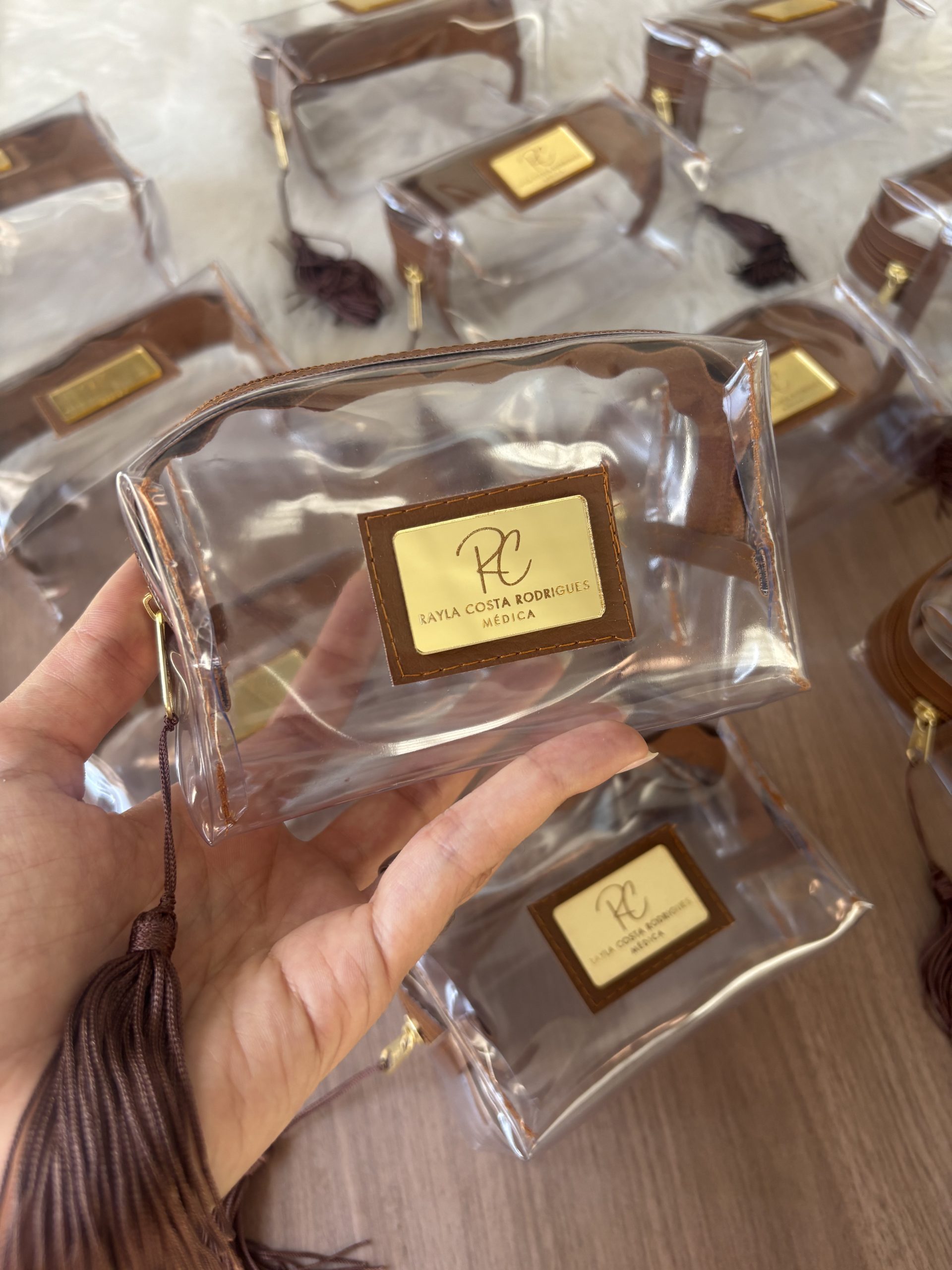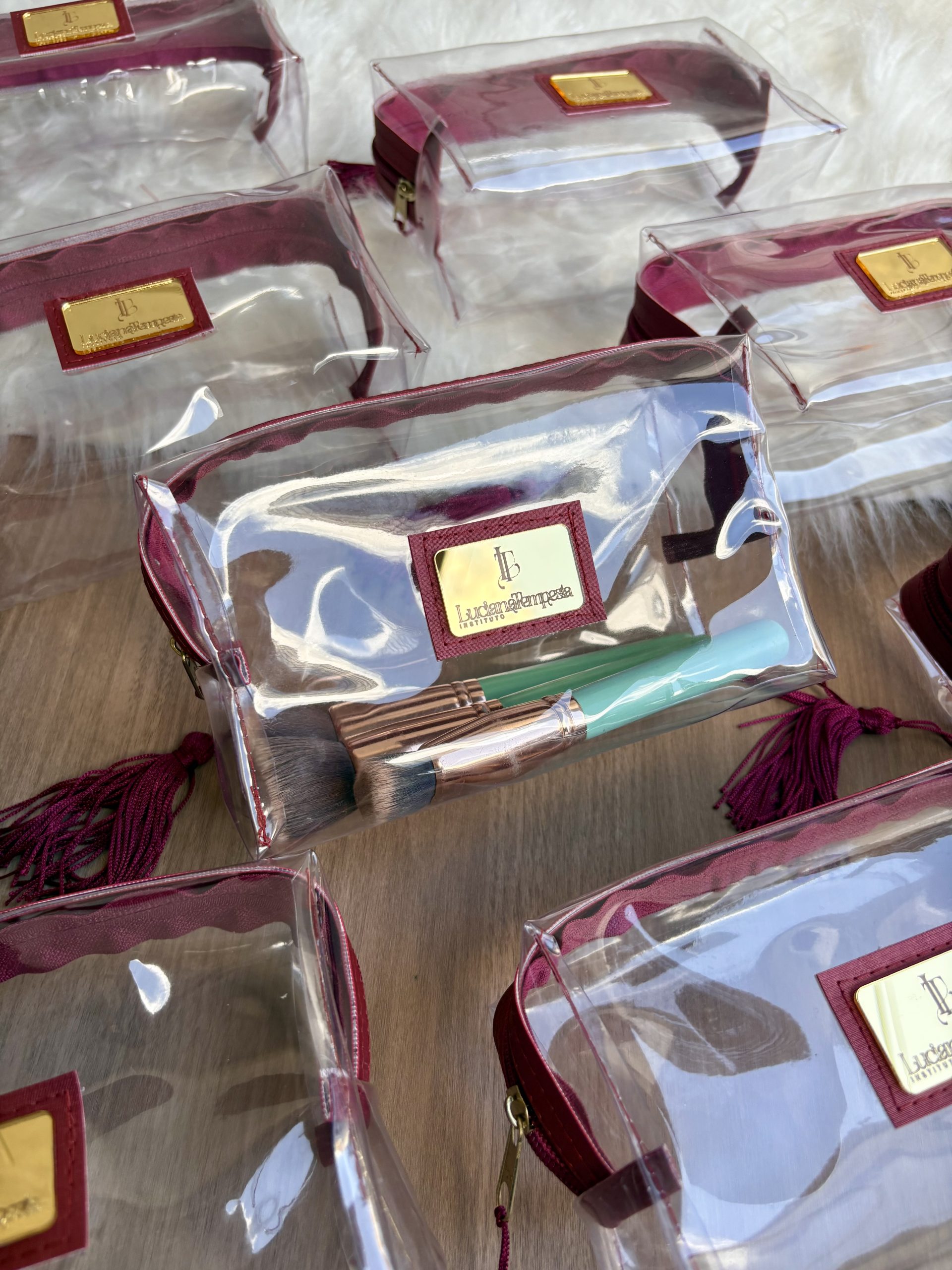 Tamanho tradicional grande: cabe pinceis de maquiagem. Personalizado com nomes dos convidados ou sua marca.